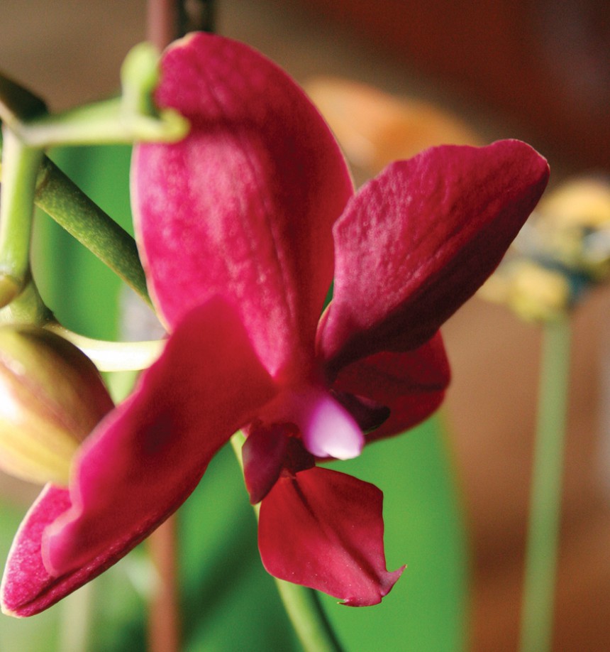 Zemei Sarmīte pievieno priežu mizas, šampaniešu korķus, kas uztur mitrumu. "Ļoti maz leju, arī tajā reizē, kad esmu viņas novannojusi, tad to nedēļu tikai drusku, drusku uzleju ūdeni. Bet viņām patīk, kad mitrina, rasina virsmu. Pēc vannošanas otrā dienā noleju no visiem šķīvīšiem nost ūdeni. Lai šķīvītis paliek sauss. Kad es orhidejas nopirku, tik lielu ziedu kā tagad nebija. Tagad skaisti zied. Krāsas dažādas, citrondzeltenā zied, tad viena sarkanraibā zied, lillā jau noziedēja."
