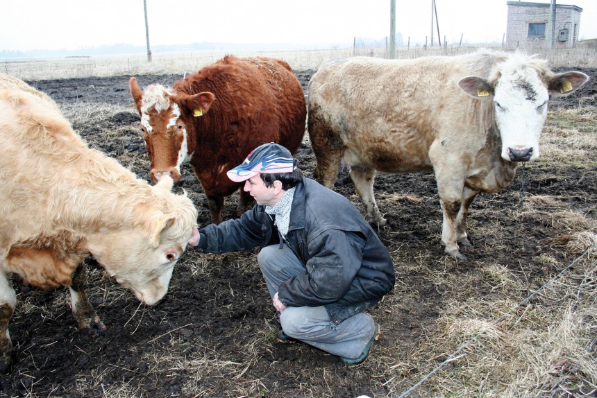 Rasmas znots Egils ir atbildīgais par baltajām zīdītājgovīm. Ir trīs govis un trīs teles. Kopšana ir vienkārša – siens, ūdens ziemā, vasarā zāle. Viņas ganās līdz pirmajam salam. Pa ziemu iedzen stallī. Šīs govis dod tikai teļus, un teļi izzīž pienu. Teļš dzīvo pie mātes līdz pusgadam, tad ierodas uzpircēji un teliņus nodod izsolē. «Es pats esmu laucinieks, nācis no Pāvilostas puses, no Sakas. Tur, mammas un tēta mājās, arī bija visi lauku darbi apdarāmi,» par sevi pastāsta Egils. Viņam patīkot zirgi. Sakā ģimenei bija trīs brašuļi. Vēl govs, bullis, vistas, cūkas. «Bez zemītes nekas nesanāk, tāpēc tur nomāju 10 hektārus zemes. Algota darba laukos nav. Ja tu dabū kādu, kas tev palīdz, viņš rēķina, cik tu saņem, un uzskata, ka tu par maz maksā. Viņš neredz, ko tu izdod, redz tikai to, ko saņem.» Tāpēc Egilam ir arī maiņu darbs Liepājā – aizbrauc uz 12 stundām, tad atkal brīvdienas.
