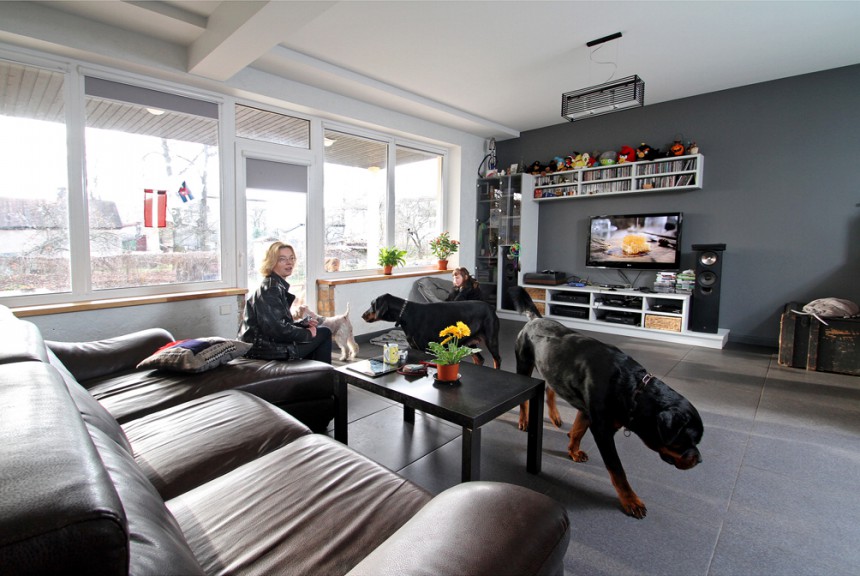 Animatores Ingas Tabakas un datorgrafiķa Aigara Gercāna ģimene, kurā aug meita Ance, mitinās pašu celtā, kā saimniece saka, vecās mājas piebūvē.