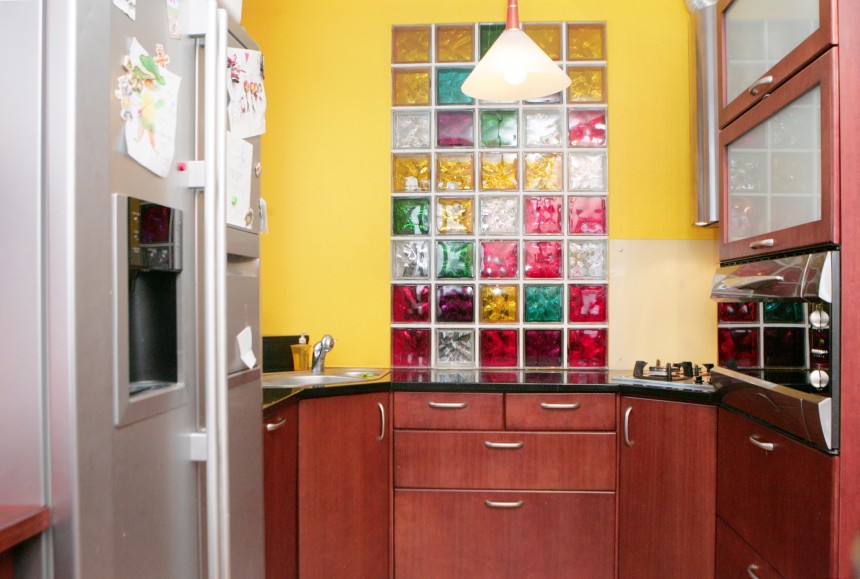 "Man patīk, ka virtuve ir atdalīta no dzīvojamās istabas," norāda mājasmāte. "To ierīkojām vietā, kur tā atradās iepriekš, vienīgi telpu paplašinājām, kā arī atteicāmies no durvīm un vienas starpsienas," skaidro mājas saimniece. Nišā, kur iepriekš atradušās durvis, kas priekšnamu savienoja ar virtuvi, salikti stikla bloki. Tie telpu padara gaišāku, kā arī ir dekoratīvs akcents. Stikla bloki esot ražoti Čehijā – valstī, kurā ir senas stikla apstrādes tradīcijas, bet pirkti Reaton. "Virtuves iekārtu darināja pazīstami meistari pēc mūsu skicēm. Nesen lasīju grāmatu par magnētiskajiem laukiem, ko mājoklī veido sadzīves tehnikas priekšmeti. Izrādās, ka tos esam pareizi novietojuši, piemēram, ledusskapi, kas rada lielu starojumu, esam ar mugurpusi nolikuši pret ārsienu."