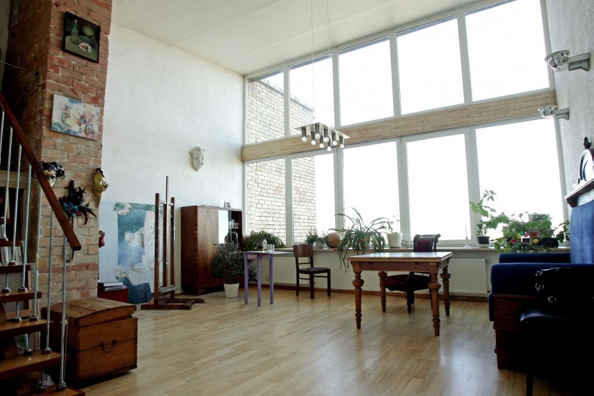 «Pirms tam mēs dzīvojām Rīgas centrā pagalma mājā, kuras logi bija vērsti pret pretējo ēku, tāpēc dzīvoklī bija tumšs vai ļoti tumšs. Ilgstoši uzturoties tādās telpās, radās depresīvs noskaņojums, arī gleznot nebija īsti kur – es parasti iekārtojos mazajā, tumšajā virtuvītē, kur trūka gan vietas, gan gaismas, lai varētu normāli gleznot,» atceras gleznotāja Kristīne Rubene. «Laimīgas sagadīšanās dēļ radās iespēja iegādāties mākslinieku darbnīcu Purvciemā, deviņu stāvu dzīvojamās mājas pēdējā stāvā. Tad vēl nebija sācies nekustamā īpašuma tirgus bums, tāpēc mājokli iegādājos par ļoti saprātīgu naudas summu.»