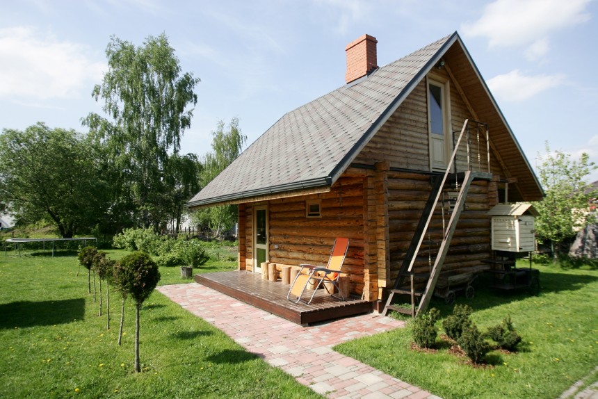 Mājai (dzīvojamā platība – 230 m2) ir tik liela terase, ka uz tās ir vieta gan apjomīgam tenisa galdam, gan visu ģimenes locekļu divriteņiem, gan grilam un dārza galdam ar krēsliem. Bet viens no ģimenes pēdējā laika jaunieguvumiem ir pirts, ko no guļbaļķiem darinājuši meistari no Latgales. To iekurinot gandrīz vai katru nedēļas nogali, un bieži vien uz pirts priekiem aicinot draugus un radus. Atvilkt elpu pēc karsēšanās uz lāviņas vai tāpat palaiskoties iespējams šūpuļkrēslā un atpūtas krēslā. Mājas un ģimenes aizsardzībai, kā arī, protams, acu priekam netālu no abām būvēm iestādīts pīlādzis (esot Balkānu saldais ar lielām ogām). Pirts priekšā dižojas interesanti apcirptu tūju rinda (krūmiņi līdzinās čupačupiem) un īvju puduris. Pazīstams ainavu arhitekts esot uzskicējis dārza plānu, bet Līgas tēvs Valdis Ozols, pēc profesijas agronoms, iesakot, ko labāk pirkt, kā stādīt un kopt.