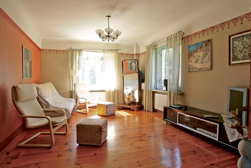 PRAKTISKI. Māja nav pārāk liela, tāpēc telpās, kur notiek saimnieciskā dzīve, katrs kvadrātmetrs tiek izmantots pārdomāti. Tā priekšnamā ir divas skapju rindas – lielākie novietoti uz grīdas, bet mazāka apjoma – pie griestiem. Tajos tiek uzglabāti apavi, kuriem nav sezona. Savukārt grīda un daļa sienas flīzētas tāpēc, ka ģimenei vienmēr ir bijuši mājdzīvnieki, kas tiek laisti ārā dārzā. «Priekšnamu remontējām 1996. gadā, kad bija modē piekaramie griesti. Remonts ir izdarīts kvalitatīvi, tāpēc nav nolietojuma pazīmju. Turklāt šobrīd man daudz aktuālāks par jaunām vēsmām priekšnama interjerā šķiet jumta remonts, jo vecais klājums ir cietis no laika zoba un vienā spārnā sācis tecēt».