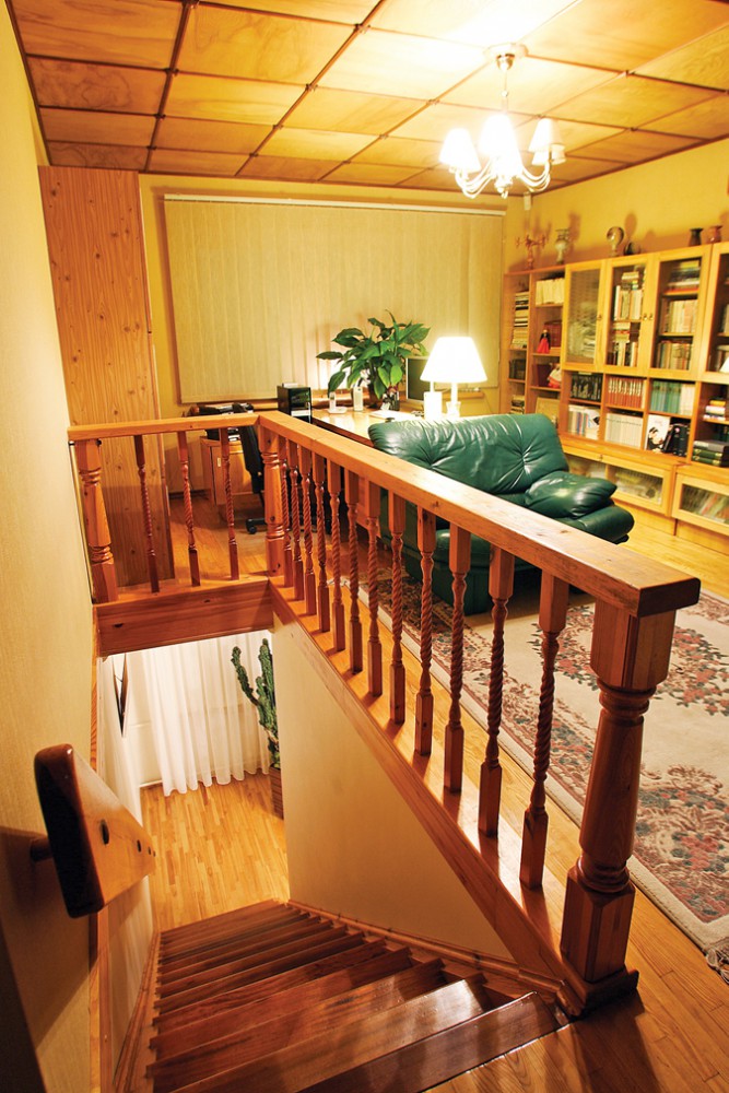 Darbistabu, kas iekārtota ēkas otrā stāvā, meita Laura izmanto mācībām. Ilga joko, ka šī telpa līdzinoties koridoram. Mēbeles ar zaļo pārklājumu saimniecei savulaik ļoti iepatikušās, tām pieskaņots arī paklājs. Padomju laikā iegādātā sekcija, kas ražota Valmieras mēbeļu kombinātā, kur izvietotas grāmatas, nedaudz pārveidota – līdzšinējās durvis tagad kalpo iebūvējamam skapim.