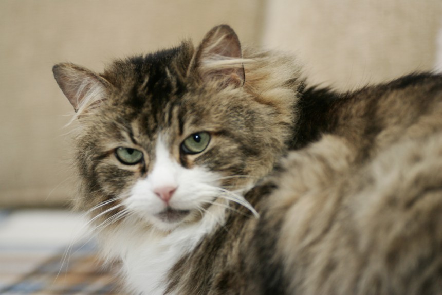 Mēnesis ir īss laika sprīdis, lai iepazītu dzīvnieku pilnībā un lai viņš sarastu ar jaunajiem saimniekiem. Pagaidām viens pret otru viņi attiecas ar pietāti, tāpat arī vēl nav atklājies Tomiņa īstais raksturs. Pēc saimnieces vērojumiem, viņš alkst, lai viņu samīļo, un laikam cenšas kompensēt trūkušo uzmanību. Tajā pašā laikā viņš nav uzbāzīgs, ļauj pastrādāt un var arī droši pa dienu atstāt mājās bez uzraudzības, jo nedarbus nesastrādā. "Pirmās dienas, kad viņš sāka dzīvot pie manis, Toms bija pat ļoti flegmatisks – ne īsti spēlēties gribēja, ne arī iepazīt jauno mājvietu. Lielāko dienas daļu gulēja, bet tas izskaidrojams arī ar to, ka nebija vesels. Mēs piestāvam viens otram. Arī viņš ir nosvērts, mierīgs, prot īstajā brīdī pienākt klāt, pieglausties. Man ir saspringts darbs, tāpēc kaķis palīdz vakarā atslābt un sakārtot domas," atzīst saimniece.