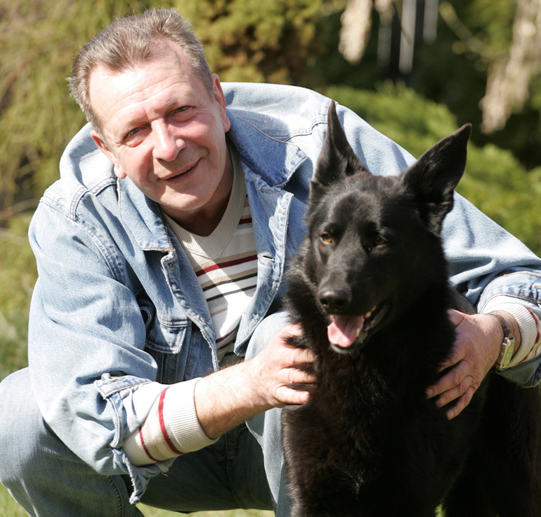 Atceroties nākamos mājas sargus un ģimenes mīluļus Rasu un Redžinaldu, aktieris rāda fotogrāfiju, kur visi vēl redzami kopā. Arī šie abi rējēji ir beiguši savas šīs zemes gaitas un atdusas dārzā, kur katram ir sava neliela kopiņa ar laukakmeni uz tās. "Man jau bija vilcenīte Rasa, kad tuvējās veterinārās klīnikas ārste man piedāvāja paņemt skaistu suni, kuru bija paredzēts iemidzināt. Sākumā spurojos pretim, ka mums nav vajadzīgi divi rējēji, bet tad piekritu. Jāsaka, ka Redžinalds bija ne vien skaists, bet arī gudrs suns, jo uzreiz saprata, ka Rasa, kas mūsu mājās bija ienākusi pirmā, ir uz hierarhijas kāpņu augstākā pakāpiena, tātad ir noteicēja."
