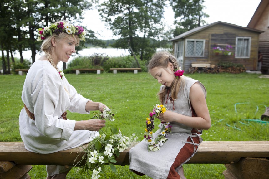 Kad vaicāju ģimenei, kā Līgo svētkos ierasts tērpties, Laima nekavējoties bilst, ka viņai allaž svarīgs vainadziņš, kuru pati arī uzpin. «Mēs domājam, ka katrai tautu meitai jāprot nopīt vainadziņš, tāpēc pin gan mamma, gan meita. Mugurā vienmēr velkam tautas tērpus. Mūsu sens sapnis bija arheoloģiskie tautas tērpi, kas, protams, ir ļoti dārgi, bet nu varam teikt, ka visi sapņi piepildās. Jāņos vienmēr uzvelkam arheoloģiskos tautas tērpus,» Dace stāsta.