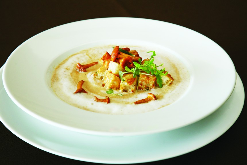 Pasniedz ar maizes grauzdiņiem un piena putām. Rotā ar apceptām gailenītēm, sojas mērci, zaļumiem.
