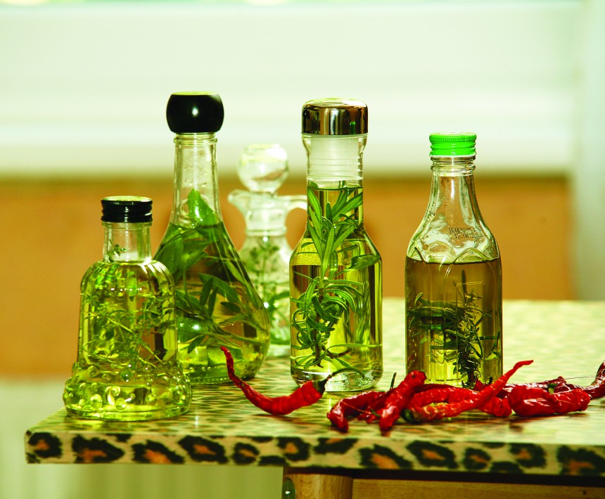 Salietas dažādās dekoratīvās pudelēs un pudelītēs, garšaugu eļļas un etiķi būs ne tikai katras namamātes īpašās delikateses, bet arī lieliski papildinās ikvienas virtuves interjeru.