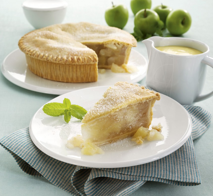Sastāvdaļas: 3 glāzes miltu, 200 g sviesta, ola, glāze cukura, 2 tējkarotes cepamā pulvera, 50–100 g alkohola, citrona miziņa, 5–6 āboli, pūdercukurs.