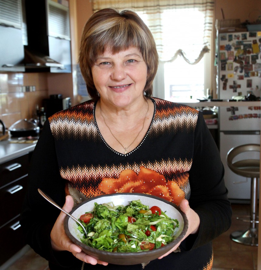 Daina bieži gatavojot zaļos salātus, kas svešajā zemē vietējiem esot iecienīti. Var ņemt rukolu, salātlapas, tomātus, sīpolu, mocarellas bumbiņas (var izmantot arī citu sieru vai sagrieztus ceptas vistas gabaliņus). Pievieno sāli, piparus, etiķi un ķirbju eļļu. Paprika šajos salātos neiederas. Salātiem aizdaram reti tiek izmantots krējums, pārsvarā ķirbju sēklu eļļa, kas tiekot ražota Austrijā. To Daina iekļāvusi savā ēdienkartē un ved arī uz Latviju tuviniekiem, lai gan ne visiem tā garšojot. To nevarot salīdzināt ar ķirbju sēklu eļļu, kas nopērkama Latvijā. Austrieši veikalos šo eļļu reti pērk, parasti to iegādājas tieši no ražotāja – svaigi izspiestu, jo tā netiek ražota ilgstošai uzglabāšanai. Daina Grācā baudījusi saldējumu ar ķirbju sēklu eļļu. Bijis ļoti garšīgi! Viņa spriež, ka tagad Latvijā ir daudz kas nopērkams, tāpēc ar kaut ko īpašu mājiniekus nevarot pārsteigt. «Reizēm pagatavoju Rozas mājās rasolu. Viņiem tas ļoti garšo!»