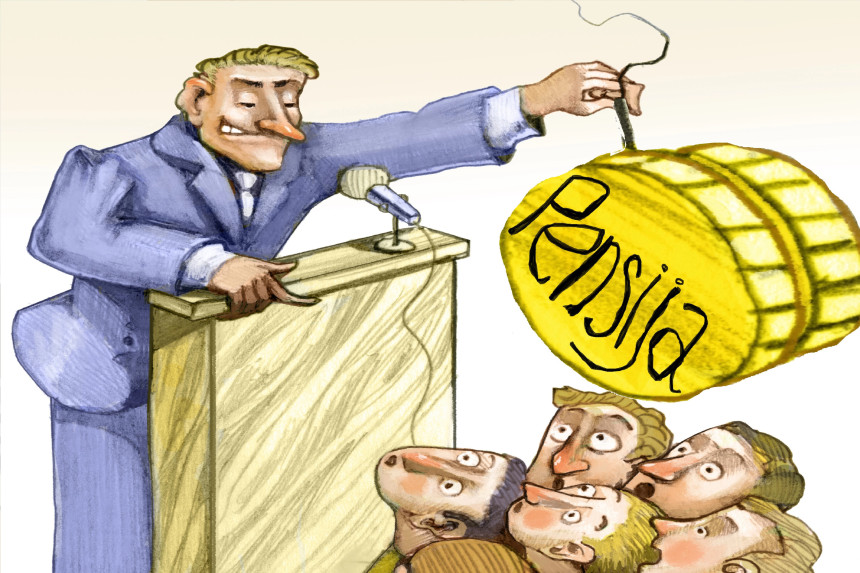 No vienas puses, atbildību par kaut ierobežotā cilvēku lokā nepopulāru lēmumu tad varētu novelt uz iepriekšējo valdību. No otras puses, tagad ar izdienas pensiju jau aplaimotajiem cilvēkiem vajadzētu kļūt par dedzīgākajiem izdienas pensiju piešķiršanas ierobežošanas, t.i., šādu ierobežošanu sološo politiķu atbalstītajiem jeb vēlētājiem. Izdienas pensijas tiek solītas tādu profesiju darbiniekiem, kuriem vajadzētu pietikt prāta, lai saprastu, ka katra nākamā tagadējā veidā piešķirtā pensija tuvina brīdi, kad pensijas pazudīs vai nu kā nauda, vai kā naudas vērtība. Tāpēc viņiem visdedzīgāk jācīnās par to, lai viņu pensijas tiktu saglabātas uz turpmāk vairs nepiešķirto pensiju rēķina.