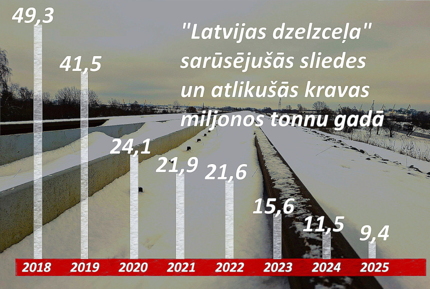 Dzelzceļa kravu pārvadājumu apjoma jau aprēķinātais samazinājuma temps 2025. gadā par 17,6% sacenšas ar dzimstības samazinājumu, kura pērnais rezultāts tiks paziņots mazliet vēlāk.