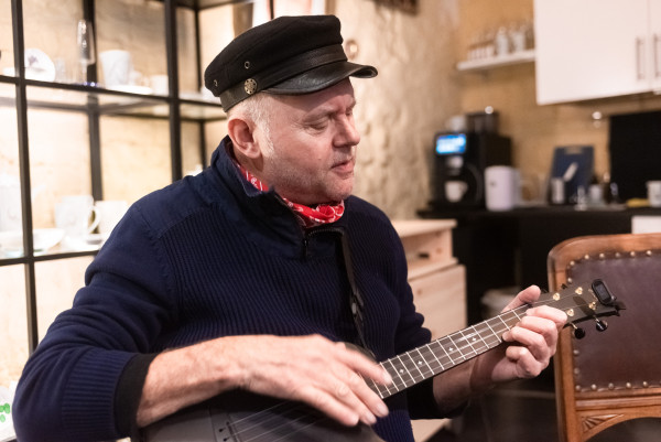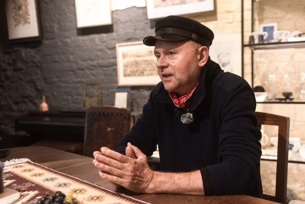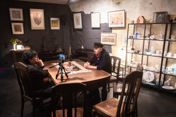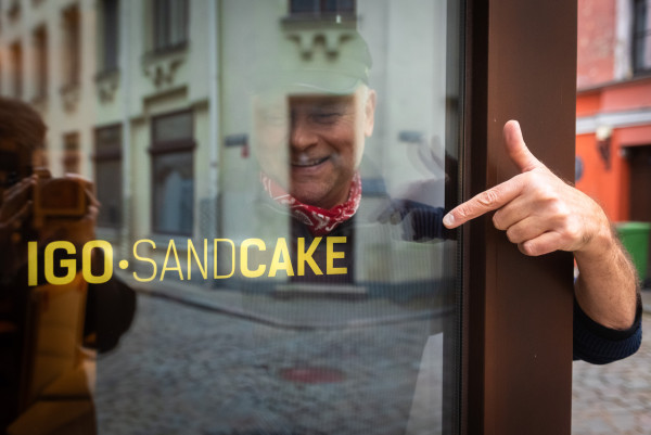 Mūsu saruna notiek Igo mākslas telpā “Sandcake”, kas ir omulīgs, silts un reizē krāšņs nostūris Vecrīgā. Plauktos izlikti brīnišķīgi trauki, ko dekorējis Igo, pie sienām viņa darinātas grafikas, telpas vidū - sens galds, pie kura, to izvelkot, var apsēsties vismaz 20 cilvēku, iedzert vīnu vai kafiju un klausīties mūziku, ko rada Igo un viņa muzikālie draugi. Maza, brīnišķīga koncertzāle, kurā veldzēt dvēseli.