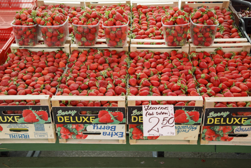 Cena - 16 līdz17 eiro kilogramā lielākajai daļai pircēju ir par augstu, jo īpaši tāpēc, ka turpat blakus var nopirkt piecas un sešas reizes lētākas ogas no Grieķijas un Polijas.