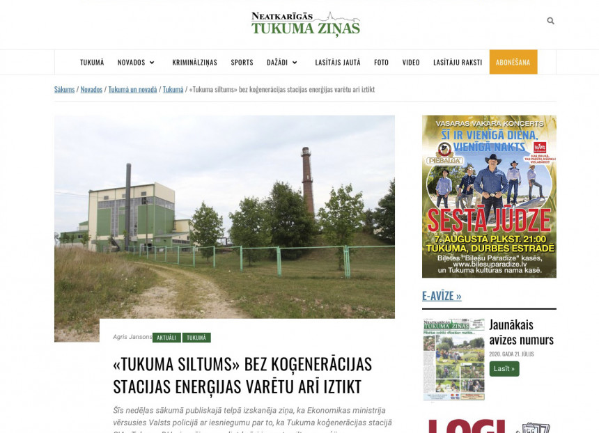 “27. maijā deputāti domes sēdē neatbalstīja līguma laušanu ar SIA “Tukums DH”. Taču pēc 3. jūlija Zemgales tiesas sprieduma, kurā par obligātā iepirkuma komponentes (OIK) izkrāpšanu SIA “Tukums DH” valdes loceklim Jānim Tenbergam piesprieda brīvības atņemšanu uz trim gadiem, liekot atmaksāt valstij izkrāptos līdzekļus vairāk nekā 2,5 miljonu EUR apmērā, pagaidām nekādas darbības ar spēkā esošo līgumu nav plānotas. Lai lemtu, kā rīkoties tālāk, Tukuma novada dome sagaidīs tiesībsargājošo institūciju lēmumus.”