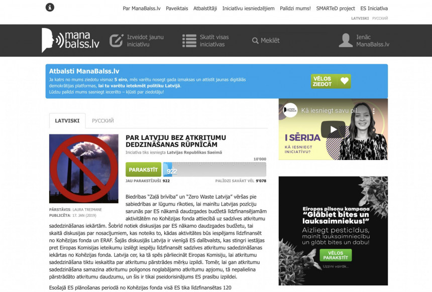 Nekas daudz gan nav savācies - tikai 922 atbalstītāji.