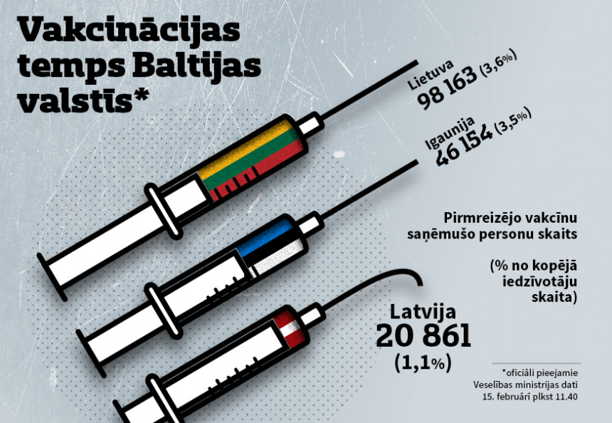 Veselības ministrijas dati liecina, ka līdz pagājušajai piektdienai kopumā pirmo poti bija saņēmuši 20 637 cilvēki, līdz sestdienai - 20 860 (tātad sestdien pirmo vakcīnas devu saņēma 223 cilvēki), līdz svētdienai - 20 861 (tātad pirmo vakcīnas devu svētdien saņēma tikai 1 (!) cilvēks). Pie šīs statistikas informācijas gan ir piebilde, ka informācija var mainīties, jo dati par vakcinācijas faktu portālā e-veselība ir jāpublicē vienā līdz piecās darba dienās pēc vakcinācijas veikšanas.