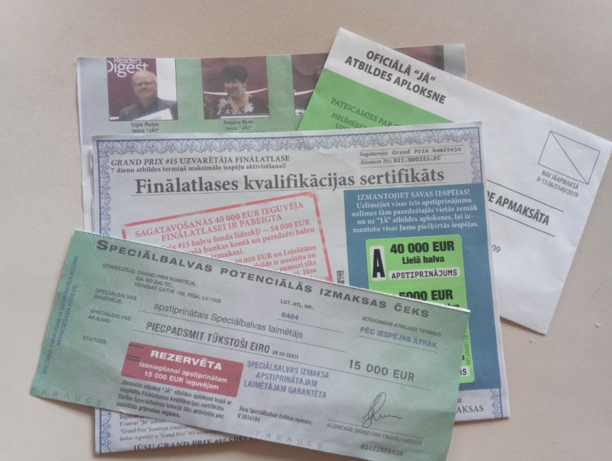 Viņam atsūta vienu grāmatu, piedāvā nākamo, tad aiznākamo. Un cilvēks pasūta, jo izmisīgi tic apsolītajiem 45 000 eiro. Piedāvājums taču izskatās tik pārliecinošs! Speciālbalvas potenciālās izmaksas čeks ar visādiem zīmogiem un autentisku paša A. Lenickas parakstu (lai kas viņš arī būtu). Uzlīmes, kas precīzi jāielīmē īpašos lodziņos. Pasmērējušies zīmogi - kā īsti, mistiski kodi pa malām. Un, protams, veidlapas daļa privātās kontaktinformācijas sniegšanai. No brīža, kad tā aizpildīta un nosūtīta, vēstules saņēmējs no anonīmas pastkastītes pārtop šī azartspēļu kantora klientā. Atsūtītajā aploksnē tiek reklamēti arī daži it kā laimētāji. Vienu tādu Neatkarīgā arī sazvanīja. Viņš ļoti uztraucās. Kur dabūts tālruņa numurs, kāda citiem darīšana utt. Taču - jā, 2017. gadā esot pasūtījis preces un esot laimējis. Pārliecinoši neizklausījās, bet var jau būt, ka par sava vārda un foto ekspluatēšanu mūžu mūžos kaut kādu naudu ir saņēmis.