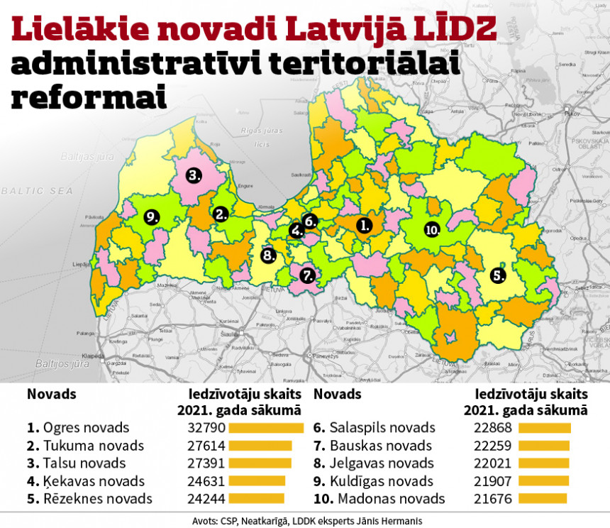 Atbilstoši jaunajiem nosacījumiem turpmāk novados ar iedzīvotāju skaitu līdz 30 000 domē būs 15 deputāti, novados ar iedzīvotāju skaitu no 30 001 līdz 60 000 - 19 deputāti, bet novados ar vairāk nekā 60 000 iedzīvotāju - 23 deputāti.