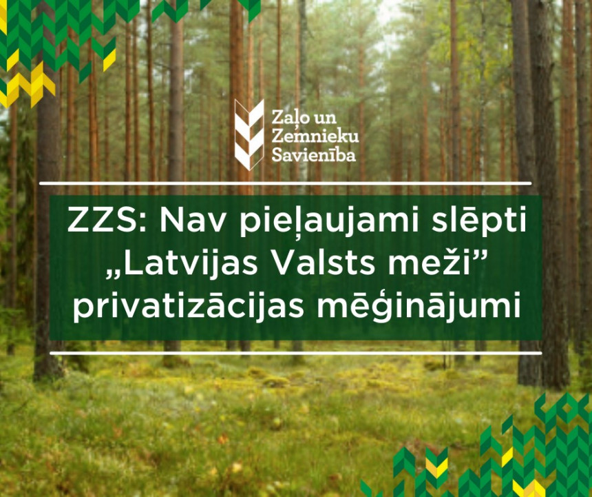 Zaļo un zemnieku savienība paziņojumā sabiedrībai vēsta, ka “nav pieļaujami slēpti „Latvijas valsts mežu” privatizācijas mēģinājumi”.
