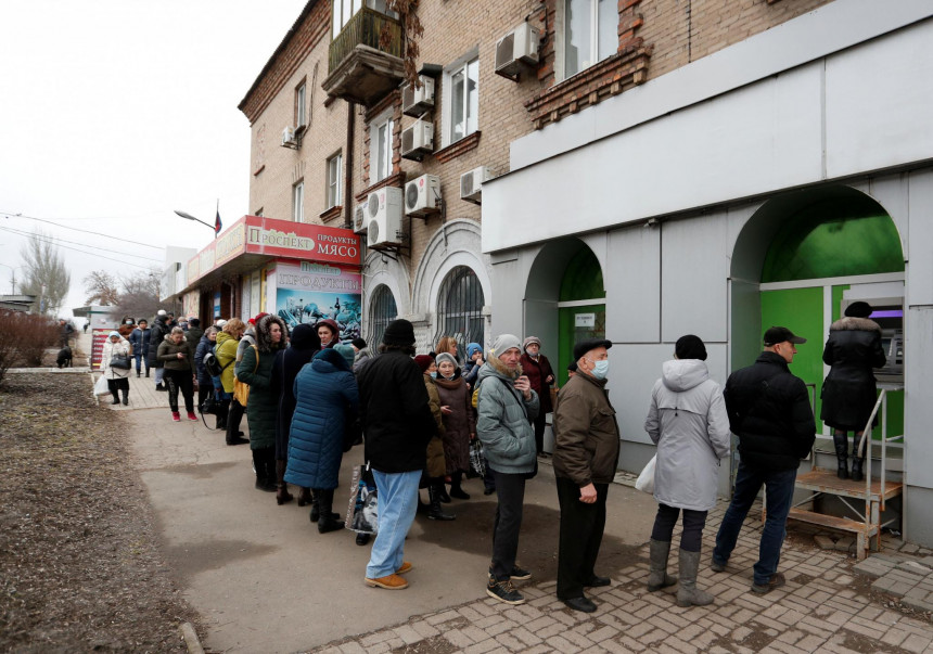 20% refinansēšanas likmei vajadzēja arī novērst to Krievijai apkaunojošo situāciju pagājušajās brīvdienās, kad ukraiņi stāvēja rindās tur, kur iedzīvotājiem izsniedza automātus karošanai ar krievu iebrucējiem, bet Krievijas iedzīvotāji stāvēja rindās tur, kur vēl varēja nopirkt ASV dolārus vai vismaz izņemt Krievijas rubļus no Krievijas bankām (attēlā)