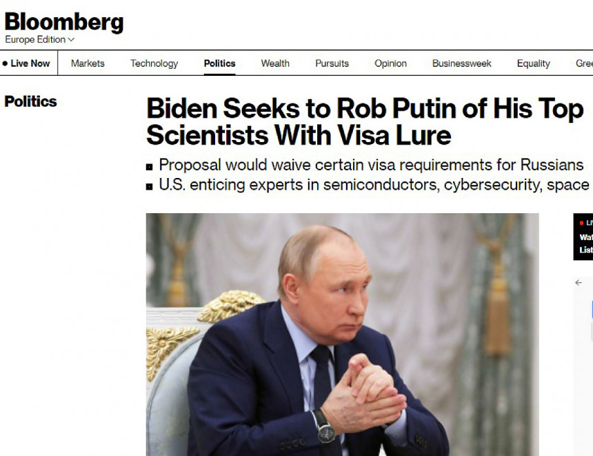 Tikmēr ASV politiskā vadība saskatīja iespēju no Krievijas mūkošos gaišos prātus aizvilināt pie sevis. Kā 30. aprīlī vēstīja “Bloomberg”, ASV pastāvošo ieceļošanas un darba atļauju saņemšanas ierobežojumu atcelšanas iemesls - vēlme ASV darba tirgum piesaistīt pusvadītāju, datordrošības, kosmisko tehnoloģiju, raķešu dzinēju, kodolinženierijas un citus augsto tehnoloģiju speciālistus. Taču, kā norādīts plašsaziņas līdzekļos, ierobežojumu atcelšanas patiesais mērķis ir izpumpēt no Krievijas inovāciju bāzes radītājus, tādējādi vājināt Krievijas un stiprināt ASV ekonomiku un drošību.