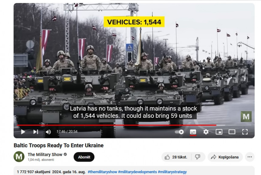 Nedēļu pēc tam, kad publicējām šādu iespējamo scenāriju, izvērstu analīzi par to publicēja viens no profesionālākajiem un straujāk augošajiem militārajiem videoblogiem “The Military Show”, kam šobrīd ir jau vismaz 1,04 miljoni abonentu un kura publicētos garās formas video vidēji noskatās no dažiem simtiem tūkstošu līdz dažiem miljoniem skatītāju, jo kanāls koncentrējas uz notikumu būtības skaidrošanu, ne tik daudz tādu vai citādu ieroču un armiju apskatīšanu. Šis konkrētais 20 minūšu video ar nosaukumu “Baltic Troops Ready To Enter Ukraine” (“Baltijas kareivji gatavi doties iekšā Ukrainā”) nepilna mēneša laikā savācis vairāk nekā 1,77 miljonus skatījumu. Savu sakāmo “The Military Show” sāk ar atskatu uz maijā notikušo Lenarta Meri piemiņas konferenci Tallinā, kur pirmo reizi tikusi apspriesta iespēja nosūtīt Baltijas kareivjus uz Ukrainu arī bez vispārējas NATO piekrišanas. Tiek atzīmēts, ka šādai rīcībai būtu nepieciešams parlamentu apstiprinājums, taču netiek pieminētas indikācijas, ka tādu nevarētu saņemt.