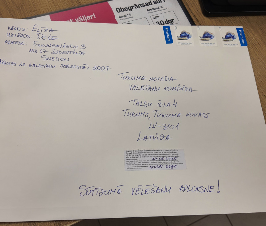 “Process nav grūts, bet nokļūdīties ir samērā viegli, ja to dara pirmo reizi mūžā. Instrukciju, kā pareizi balsot, es tāpēc pārlasīju trīs reizes. Bija interesanti iepazīties ar visiem kandidātu sarakstiem, kas startē vēlēšanās Tukuma novadā, bet lielāko daļu no kandidātiem personīgi nepazīstu, tāpēc atdevu balsi par stabilām vērtībām. Labais moments ir tāds, ka, mājās balsojot, var izlemt nesteidzīgāk nekā vēlēšanu kabīnē iecirknī. Noskatījāmies arī videopamācību, kurā bija uzsvērts, ka uz lielās aploksnes jānorāda mūsu tagadējā faktiskā dzīvesvietas adrese Zviedrijā, nevis deklarētā dzīvesvieta Tukuma pilsētā. Pēc tam vietējā Sēderteljes pasta nodaļā operatore ilgi brīnījās, ka sūtīšu tādu aploksni, un kādas 10 minūtes viņa patērēja marku un uzlīmju sagatavošanai. Man vēl nācās izskaidrot, ka Latvija tiešām atrodas Eiropas Savienībā. Mūsu izmaksas par divām vēstulēm ar minimālo svaru — 132 zviedru kronas jeb 12,16 eiro,” balsotājs atreferē procedūru.