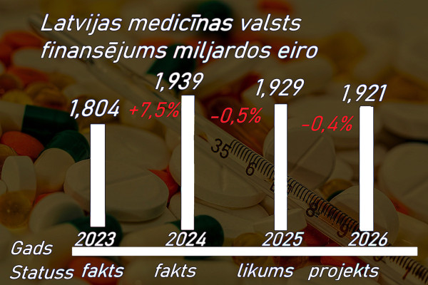 Pašreiz jebkuru citu valsts izdevumu samazināšanu pieņemts pamatot ar naudas novirzīšanu aizsardzībai, bet noder gan atgādinājumi par Latvijas iedzīvotāju skaita samazināšanos un pienākumu samaksāt procentus par jau paņemtajiem kredītiem, gan aizdomas un mājieni par viena otra mediķa pārāk trekno dzīvi.