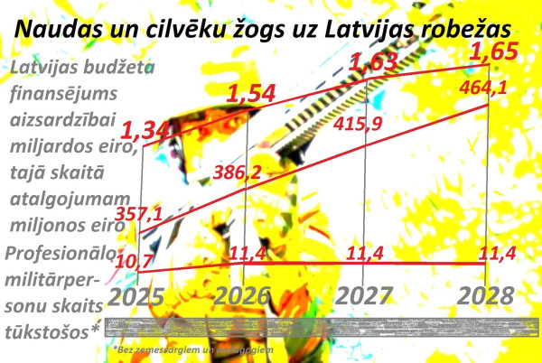 Tātad pārskats sākas ar faktiskajiem datiem par 2024. gadu, turpinās ar šā gada rādītajiem, kas gada nogalē jau gandrīz pilnībā zināmi, pamato 2026. gadam pieprasīto naudas summu un iesniedzas nākotnē vēl dažu turpmāko gadu garumā. Šis pārskats un tā vārdiskais skaidrojums (Saeimas komisijas sēdes audioieraksts) visiem pieejami Saeimas mājaslapā. Šeit neliels ieskats Aizsardzības ministrijas sagatavotajos skaitļos: