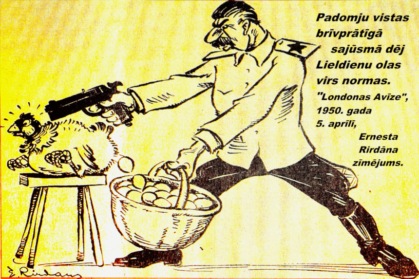 Okupētajā Latvijā 1946. gads izceļas ar Lieldienu pieminēšanas minimumu pat bez Lieldienu ķengāšanas. Iesprukušas Lieldienas Jēkabpils apriņķa avīzes “Brīvā Daugava” 1946. gada 18. aprīļa feļetonā par pasažieru spaidīšanos, lai iekļūtu mazbānītī uz Viesīti: ““Vai manu dieniņ! Kurvīti ar olām!.. Mīļie ļautiņi, apžēlojaties! Manas oliņas... Visas Lieldienas pagalam!” kliedz rumpīga sieviņa.”