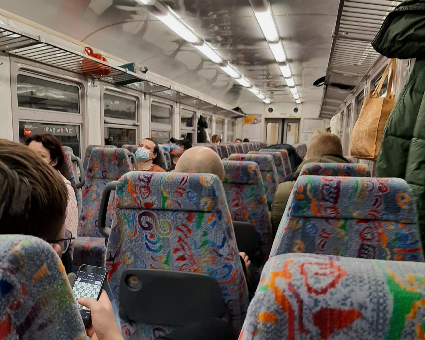 Jāuzsver, ka nekāda, absolūti nekāda informācija pa vilciena skaļruņiem pārraidīta netika. Vienā brīdī salonā nodzisa gaisma. Pilnībā. Vienīgie gaismas avoti bija pasažieru mobilie tālruņi. Netālu no ieejas vagonā sēdēja ģimene ar bērniem, 5-7 gadus veciem. Labi, ka salonā nodzisusī gaisma viņiem izraisīja jautrību un smieklus, lai gan varēja būt arī cita reakcija, jo situācija izskatījās drīzāk draudīga. Pēc aptuveni piecu minūšu sēdēšanas tumsā gaisma iedegās ar pusjaudu.