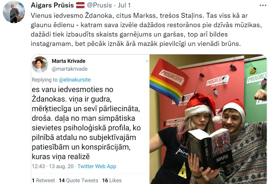 Internets pilns ironiskām asprātībām, kurās piedāvā līdzīgas diskusijas - vai verdzības atcelšanu var atbalstīt? Kāda ir cilvēku ādas krāsas ietekme uz viņa IQ un tamlīdzīgas. Divdomīgi skan arī domapmaiņa: “Vēlēšanas. Kam tās ir vajadzīgas?” ar šādos pasākumos neiztrūkstošo Ivetu Kažoku “domātāju” vidū. Teorētiski interesanta būtu varējusi izvērsties diskusija: “Starp liberastiem un diktatoriem”, ja vien starp “diskutētājiem” nebūtu vieni paši, kā viņi šajā diskusijas pieteikumā nosaukti - liberasti - Rita Ruduša, Alise Zariņa, Niks Derums un Ivars Austers, kuriem atsvaram klāt pielikta “mērenā” filozofe Elvīra Šimfa.