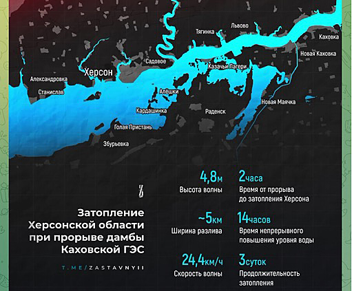 Pamata versijas ir divas. Kahovkas ūdenskrātuves dambja uzspridzināšana ar plašu Hersonai un Dņepras lejtecei piegulošu teritoriju applūdināšanu. Kahovkas ūdenskrātuve ir viena no lielākajām Dņepras HES kaskādē, un tās ietilpība ir 18 kubikkilometru. Salīdzinājumam - Rīgas HES ūdenskrātuves ietilpība ir 0,3 kubikkilometri. Jau aplēsts, ka dambja pilnīgas nopostīšanas gadījumā Hersonā, kas atrodas 40 kilometru lejpus Kahovkas, ūdens līmenis uz vairākām dienām varētu pacelties par 1,5 metriem.