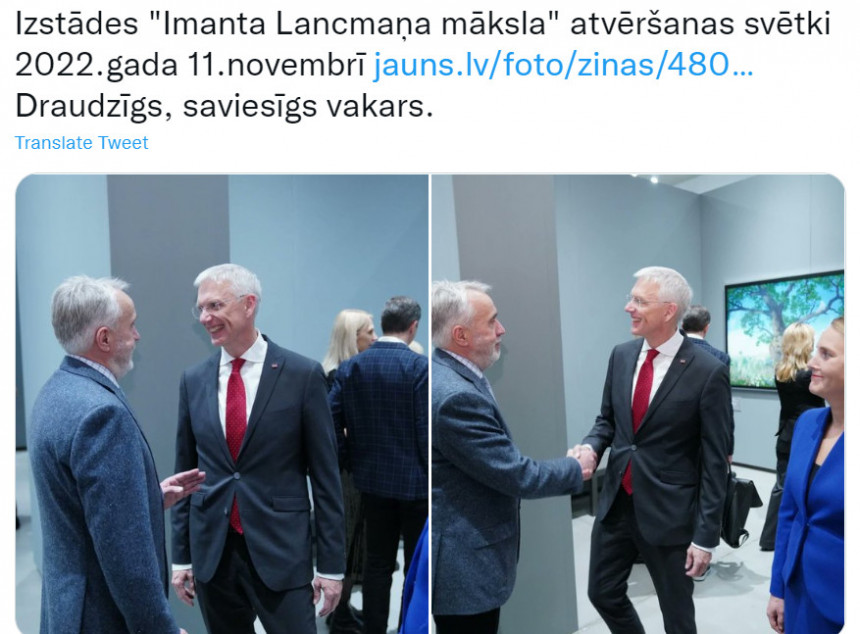 Kariņš, manuprāt, zemapziņas līmenī baidās vadīt valdību, kurā neatrodas dominējošā situācijā. Šī paša iemesla dēļ viņš neiet uz televīzijas diskusiju raidījumiem, jo nejūtas iekšēji pārliecināts. Šī viņa nepārliecinātība spilgti izpaudās fotogrāfijās no izstādes “Imanta Lancmaņa māksla” atklāšanas, kur viņam bija īsa saruna ar kanonizēto “oligarhu” Andri Šķēli. Šajās bildēs ķermeņa valoda runāja pati par sevi. Iepretim Šķēles monumentāli cienīgajam stāvam Kariņš ar savu nervozo, muļķīgo smaidu un kokainajām ķermeņa kustībām izskatījās kā tirliņš.