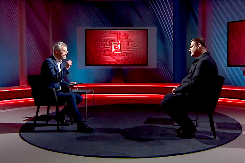 Patiesības labad gan jāsaka, ka Rēdera raidījuma vadīšanas stilistika šoreiz nebija agresīvi uzbrūkoša. To arī nepieļāva Helmaņa uzsvērti mierīgais runas tonis. Ja Rēders uz Helmaņa lēnīgo runas ritmu atbildētu ar Kaimiņa “Suņu būdas” cienīgiem rējieniem, tad muļķīgi izskatītos tikai viņš pats. Līdz ar to abi sarunas biedri iekļāvās ļoti korektā rāmī, kuru bija patīkami klausīties un skatīties.
