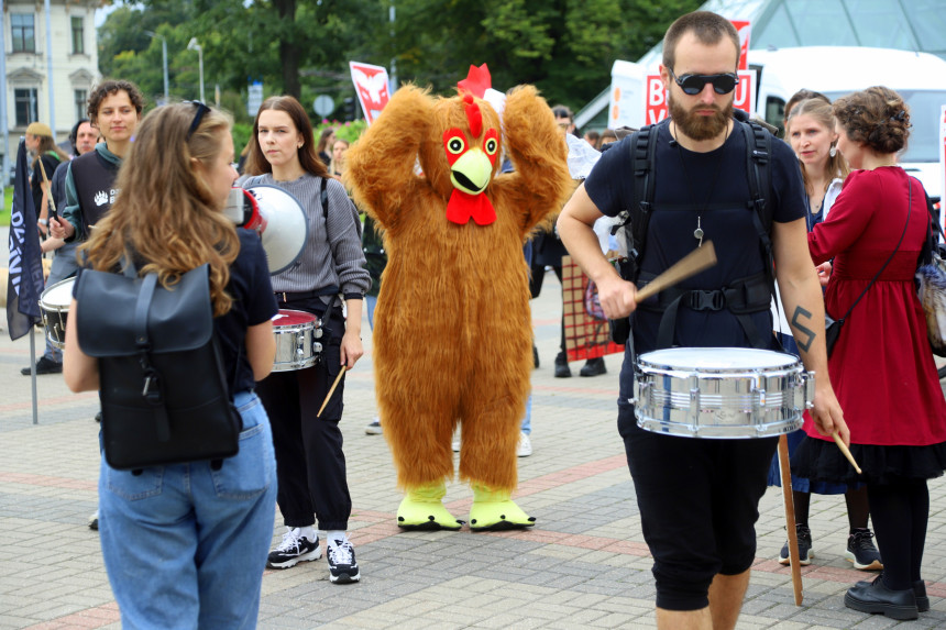 “Saki cietsirdībai nē – vistu sprostus pagātnē!”, “Atver sirdi – atver būri”, “Sprostiem nē!” – ar šādiem un līdzīgiem plakātiem sestdien fermu dzīvnieku aizsardzības biedrība “Dzīvnieku brīvība”, pulcējot vairākus simtus dalībnieku, organizēja gājienu no Kongresu nama, ejot cauri Rīgas centram, garām Saeimai, noslēdzot gājienu Neatkarības laukumā. Tā bija šā gada lielākā dzīvnieku aizstāvības akcija, kopīgi iestājoties par visu dzīvnieku aizsardzību un īpaši aicinot likumdevējus aizliegt dējējvistu turēšanu sprostu sistēmās Latvijā.