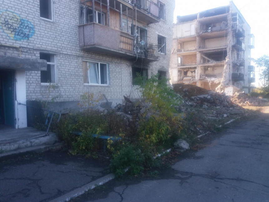 Jo tuvāk Krievija un fronte, jo vairāk postījumu redzam. Ir sagrauts tilts pāri Severskijdonecas upei, ko, iespējams, ukraiņi paši ir uzspēruši gaisā, lai kavētu Krievijas armijas uzbrukumu. Un tad jau pagalam nelāgs skats - iebraucot Izjumas pilsētā, redzama liela daudzdzīvokļu māja, kurai sprādziens izrāvis gabalu. Bērnu spēļu laukumiņš sāk aizaugt ar nezālēm, drupu kaudzē mētājas viena čība, šķīvju lauskas, lupatu lēveri, mēbeļu driskas.