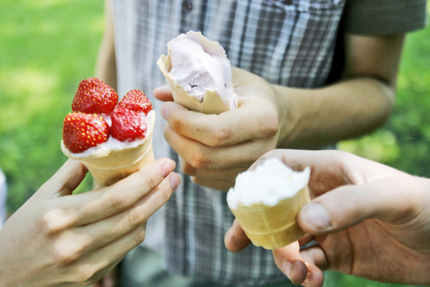 Patīkams novērojums: saldējumu vitrīnās parādījušies puskilograma iepakojumi papīra turzās. Tas atgādina par amerikāņu filmām, kurās saskumušas meitenes izņem no saldētavas kārtīgu spainīti saldējuma un saldā egoismā, nedomājot par figūru, notiesā visu līdz pēdējai karotei un atkal jūtas laimīgas. Kāpēc gan ne!