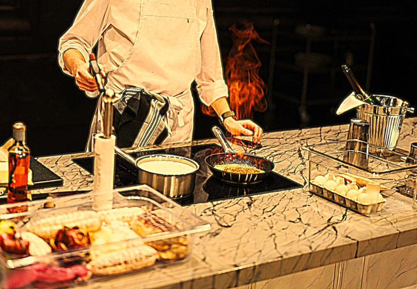 Par vēl vienu izrādes stūrakmeni kalpo tas, ka A. Karapetjans ir nodzīvojis Parīzē gandrīz gadu un tagad var dalīties ar atmiņām, ka filmēšanas dienās pusdienu laikā ēsts un dzerts ticis stundas divas, un to laikā sarunas pievērsušās katram no pasniegtajiem ēdieniem un vīniem - "saruna pie galda bija nopietnāka nekā saruna par kadrējumiem, gaismām un aktierspēli pirms tam, darba laikā."