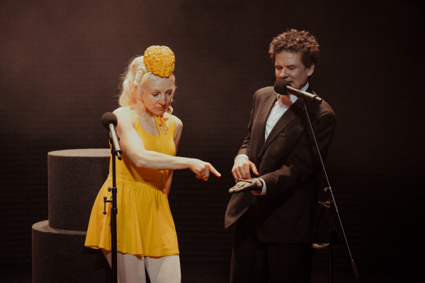 A. Arto “nežēlības teātra” lozungs tiek likts lietā gan P. Bruka un M. E. Estjēnas lugā, gan M. Kažas veidotajā izrādē, kurā Viļa Daudziņa un Gerda Lapoškas atveidotie “doktori” mēģina izmantot Š. sieviešu dzimumā personificētās Gunas Zariņas īpašās spējas kā šķirbiņu, caur kuru ieraudzīt vai jebkādā citā veidā noskaidrot ko tādu, ko pirms viņiem neviens nav noskaidrojis. Protams, ka viņiem nekas no iecerētā neizdodas, kas kaut kādā ziņā pat dod gandarījumu, jo nekauņas dabūja to pašu neko, ko pelnījuši.