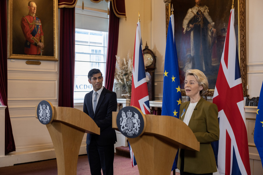 Britu premjers Riši Sunaks un Eiropas Komisijas prezidente Urzula fon der Leiena vakar vienojušies par izmaiņām tā dēvētajā Ziemeļīrijas protokolā, taču šīs provinces Demokrātiskā unionistu partija (DUP) pagaidām nav steigusies paust atbalstu dokumentam, norādot, ka jāizvērtē visas juridiskās detaļas. Vienošanās mērķis ir panākt, lai Ziemeļīrija vairs nebūtu atrauta no Apvienotās Karalistes tirgus, likvidējot muitas barjeras un birokrātiskos šķēršļus, bet DUP atbalsts ir tik svarīgs tādēļ, ka šī partija jau gadu paralizē Ziemeļīrijas parlamenta darbu un kā priekšnosacījumu, lai atgrieztos tajā, izvirzījusi prasību būtiski grozīt protokolu.
