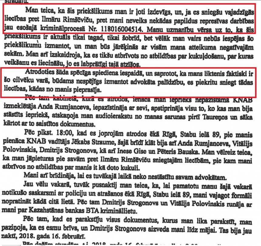 Iesniegumā visai detalizēti aprakstītas metodes, ar kādam iegūtas V. Ziemeļa liecības. Īpaši interesanti ir V. Ziemeļa jaunie rakstiskie liecinājumi, ka iepriekšējās liecības no viņa tikušas izspiestas, Valsts policijas Ekonomisko noziegumu apkarošanas pārvaldes darbiniekiem cieši un koordinēti sadarbojoties ar KNAB izmeklētājiem. Līdz šim publiski zināma informācija ļāva spriest tikai to, ka šīs un citas izmeklēšanas iestādes savā starpā konkurē, bet ja “sadarbojas”, tad grūsta viena otrai iesniegumus (lasi - atbildību) par kaut kādu kriminālprocesuālo darbību veikšanu.