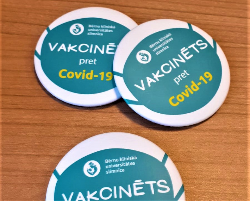 Nozīmītes ar uzrakstu “Vakcinēts”, “Es vakcinējos pret Covid-19” jau šobrīd ir pieejamas. Tādas izsniedz, piemēram, Bērnu klīniskās universitātes slimnīca. Vakcinācijas projektu nodaļa gan norāda, ka tādas nozīmītes dala atsevišķi pakalpojumu sniedzēji, bet šobrīd tādas netiek pasūtītas centralizēti.