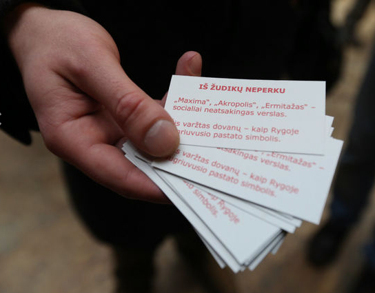 Lietuvā, Viļņā šodien notikusi protesta akcija pret veikalu tīklu "Maxima'', kurā akcijas organizētāji aicina aizdomāties par Rīgā notikušās Zolitūdes traģēdijas iemesliem, vēsta 15min.lt
