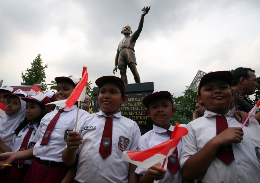 Desmitgadīgā Baraka Obamas statuja uzstādīta Džakartas centrā. Tā veidota gandrīz dabīgā lielimā un attēlo ASV prezidentu kā zēnu, kurš ģērbies šortos un krekliņā.