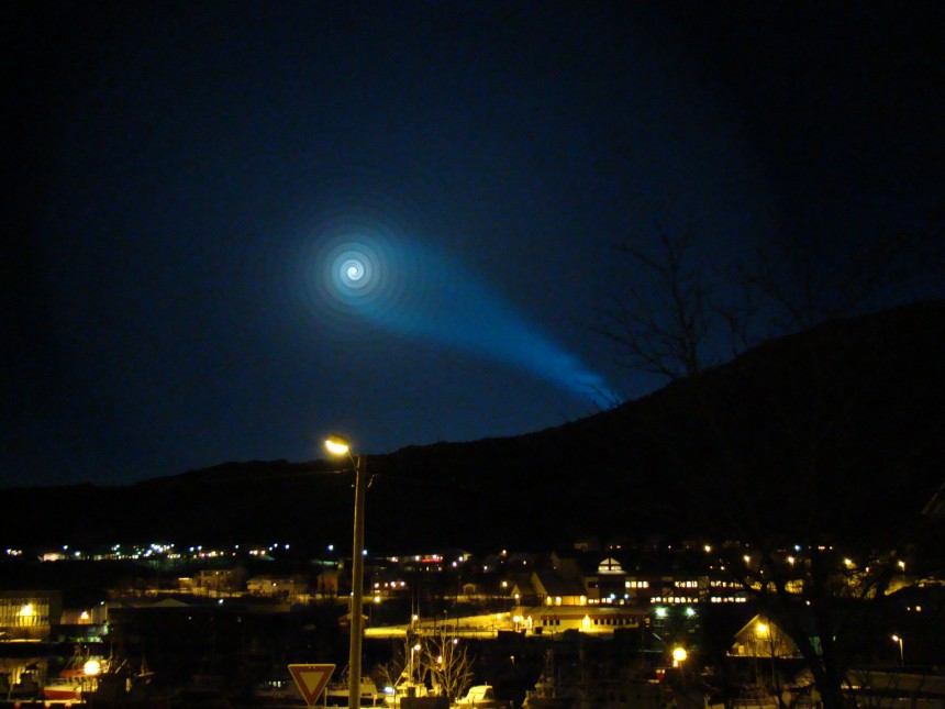 Krievijas starpkontinentālās ballistiskās raķetes izmēģinājuma kārtējā neveiksme bija vērojama arī Norvēģijā, kur nakts debesīs varēja vērot spožu spirālveida gaismu.