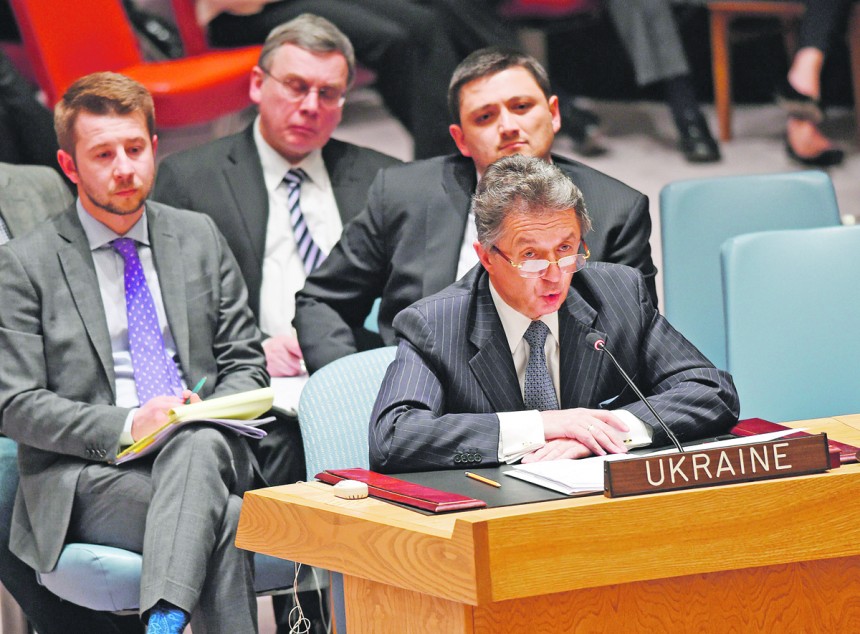 Krievijas ultimatīvā prasība nekavējoties sasaukt ANO Drošības padomes sēdi, lai spriestu par notiekošo Austrumukrainā, izvērtusies par fiasko Maskavai. Ar saviem apgalvojumiem un pārmetumiem tā palikusi lepnā vientulībā, bet ASV, Lielbritānijas, Francijas un Austrālijas pārstāvji ANO izmantojuši gadījumu, lai apsūdzētu Krieviju separātistu atbalstīšanā, vilktu paralēles ar Krimu, kas tika anektēta pēc līdzīgām pašaizsardzības vienību aktivitātēm, un atgādinātu, ka Maskava melo, apgalvojot, ka neesot pie Ukrainas robežām koncentrējusi desmitiem tūkstošus labi apbruņotu karavīru. Ukrainas vēstnieks ANO Jurijs Sergejevs vēlreiz saviem kolēģiem skaidrojis, ka Ukrainā pašlaik neesot nekāda pilsoņu kara, – konfliktu cenšas mākslīgi uzkurināt valstī iefiltrējušies Krievijas īpašo dienestu aģenti, bet to uztur Kremlim lojālie un Ukrainā skatītie televīzijas kanāli un Krievijas amatpersonas. J. Sergejevs solījis, ka līdz 17. aprīlim, kad Ženēvā paredzēta augstākā līmeņa sanāksme par situācija noregulējumu, Ukraina apkopos visus tās rīcībā esošos pierādījumus, kas liecina par Krievijas saistību ar valsts iestāžu ieņemšanu. Lai gan šos pierādījumus interesenti var pavisam vienkārši atrast internetā – par piederību Krievijas spēka struktūrām liecina separātistu ekipējums un simbolika, bet nereti viņi (piemēram, vīrietis, kurš vakar vadīja uzbrukumu Gorlovkas pilsētas milicijas nodaļai) paši lielās ar savu piederību kaimiņvalsts armijai.