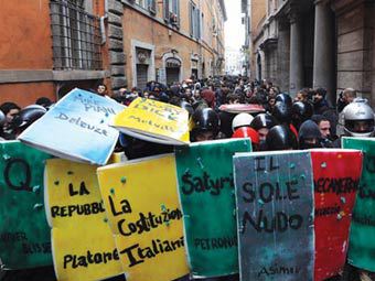 Turīnā, kuras rūpniecība smagi cietusi no divus gadus ilgušās ekonomikas lejupslīdes, vairāki simtu demonstrantu iesaistījušies sadursmēs ar policiju.